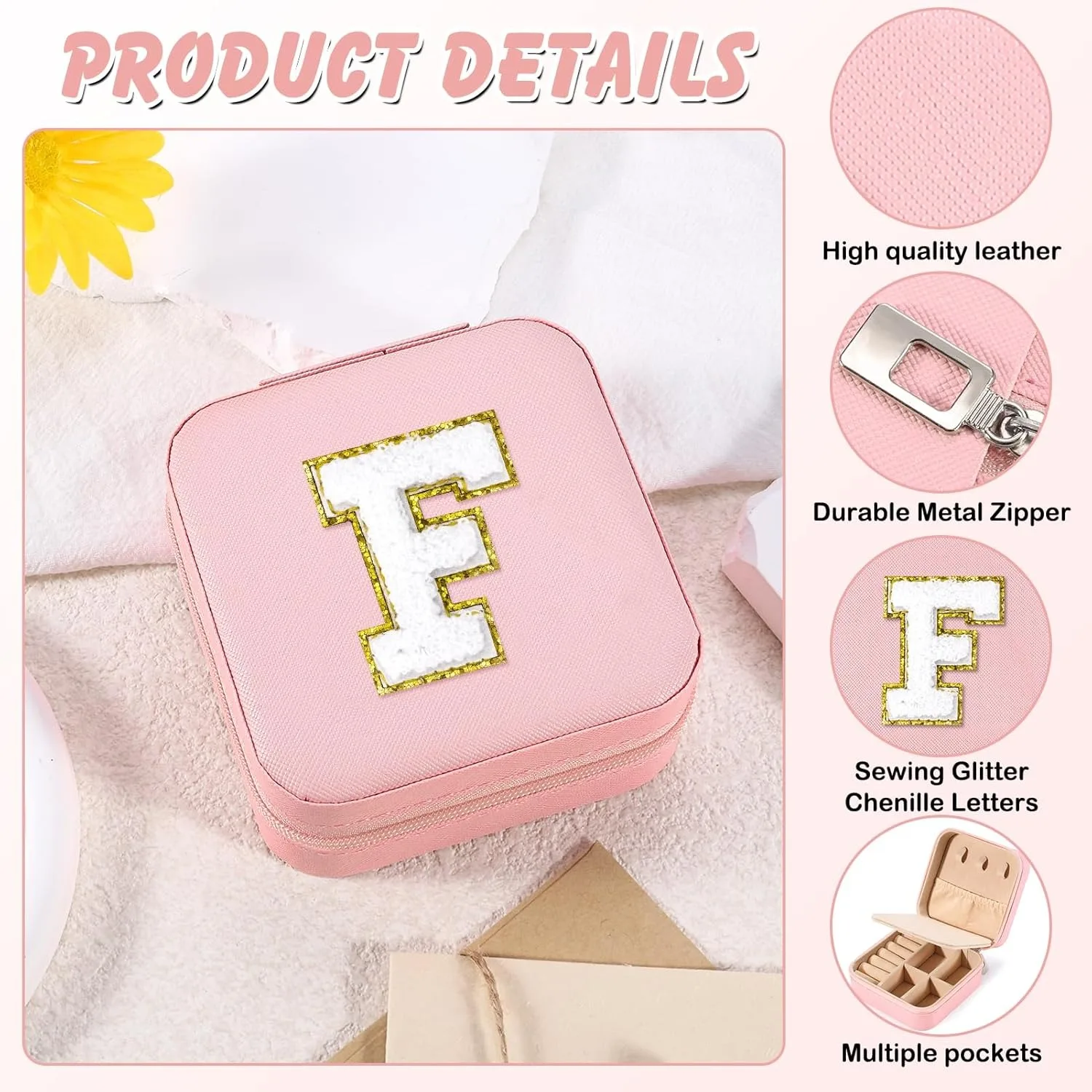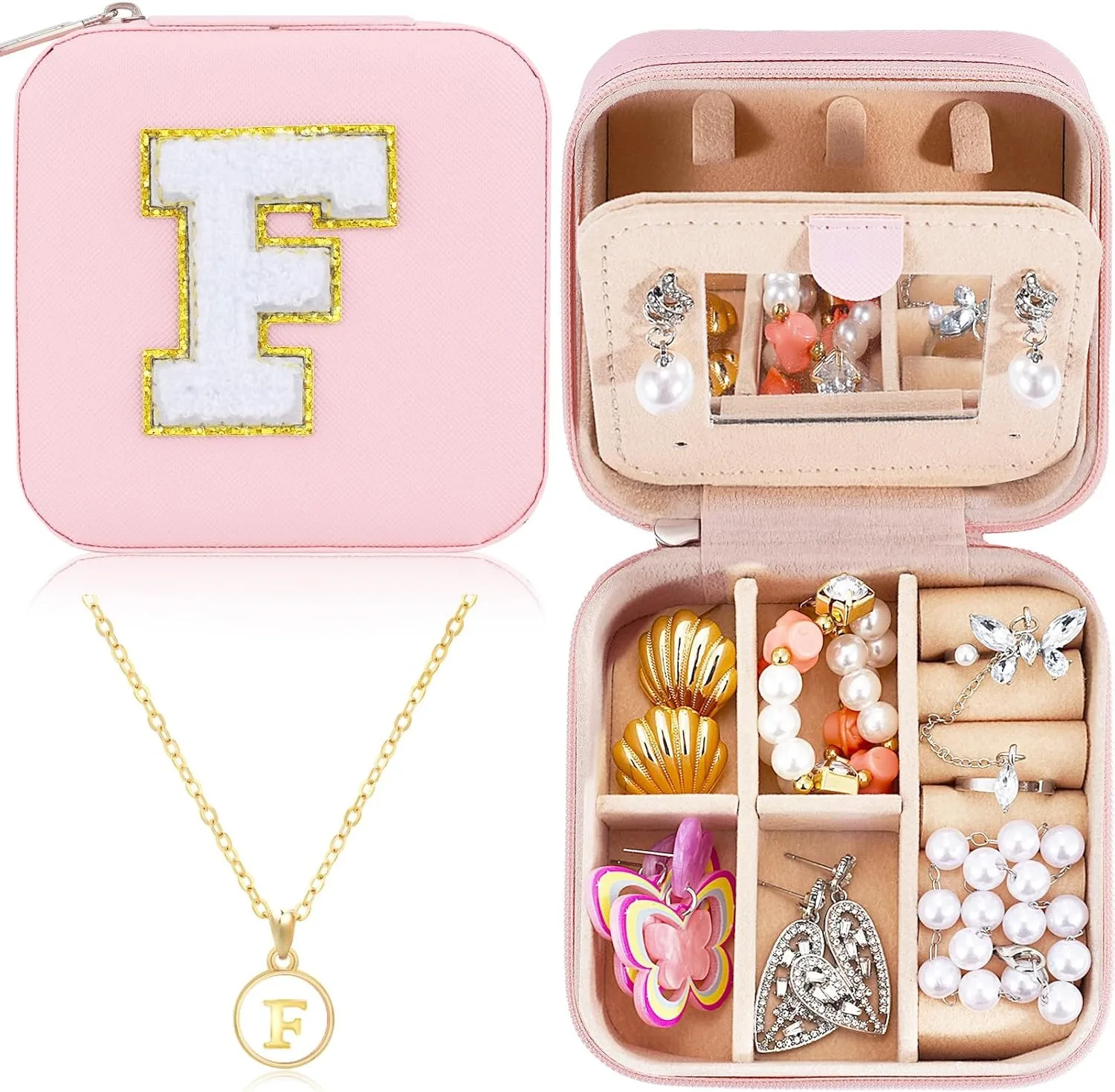 - Portable Travel Jewelry Case: This preppy trendy stuff travel jewelry box case with Initial can be used to place various jewelry in different areas using a mirror. The sturdy and smooth zipper keeps your jewelry securely inside the box, making jewelry box case easy to open and close. Lightweight and lightweight. You can easily travel and carry it with you. Be cautious and cautious no matter when or where you are